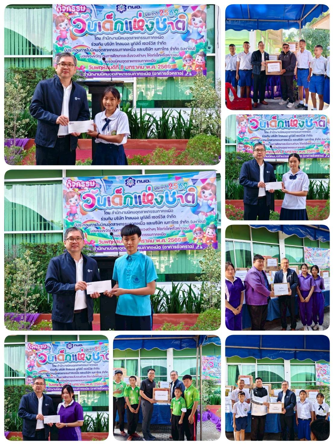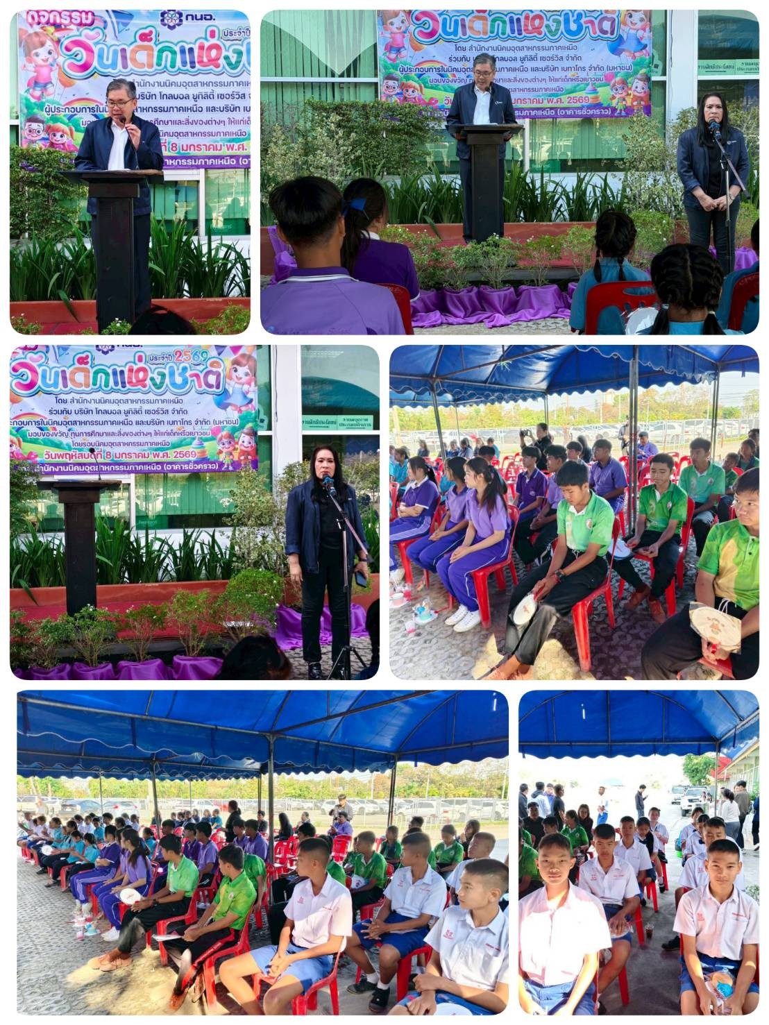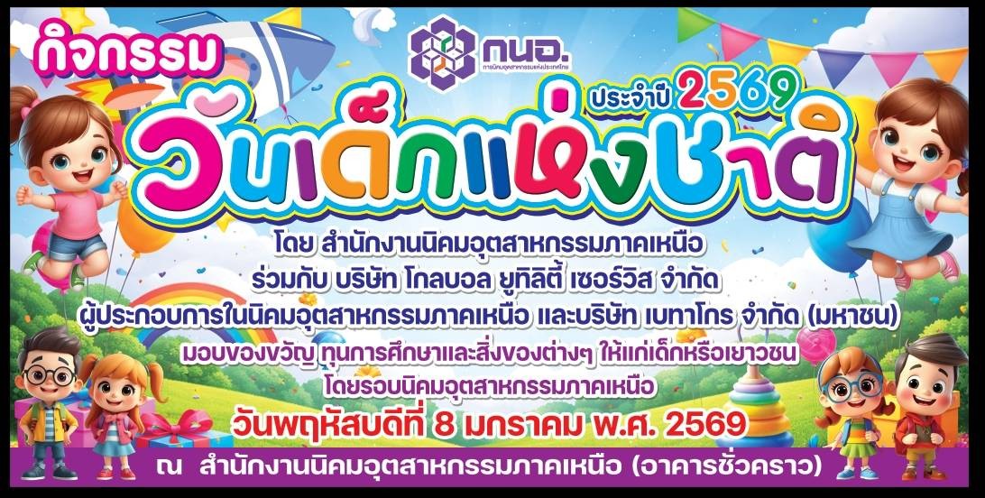 สำนักงานนิคมอุตสาหกรรมภาคเหนือ (สนน.) เมื่อวันที่ 8 มกราคม 2569 เวลา 10.00 - 12.00 น. ณ อาคารสำนักงานชั่วคราวนิคมอุตสาหกรรมภาคเหนือ สนน. ร่วมกับผู้ประกอบการในนิคมฯภาคเหนือ, บริษัท โกลบอล ยูทิลิตี้ เซอร์วิส จำกัด(Gusco) และบริษัทเบทาโกร จำกัด (มหาชน) จัดกิจกรรมวันเด็กแห่งชาติประจำปี 2569 โดยมีนายพิรัฐพล ตนานนท์ ผู้อำนวยการสำนักงานนิคมอุตสาหกรรมภาคเหนือเป็นประธานในการเปิดกิจกรรมในวันเด็กปีนี้ โดยมีรูปแบบการจัดกิจกรรมดังนี้ 1. มอบของขวัญและสิ่งของต่าง ๆแก่โรงเรียนที่เข้าร่วมจากสถานศึกษาโดยรอบนิคมฯภาคเหนือ 2. มอบทุนการศึกษาแก่เด็กนักเรียนจากสถานศึกษาโดยรอบนิคมฯภาคเหนือ 3. จัดเกมส์ให้แก่เด็กนักเรียนได้เล่นและรับของรางวัล 4. จัดให้มีอาหารทานเล่น อาทิ ไส้กรอก และลูกชิ้น โดยมีบริษัท เบทาโกร จำกัด (มหาชน) เป็นผู้สนับสนุนในครั้งนี้ กิจกรรมในครั้งนี้จัดขึ้นเพื่อเป็นการเสริมสร้างความสัมพันธ์อันดี กับชุมชนที่อยู่โดยรอบนิคมฯภาคเหนือ โดยมีสถานศึกษานำนักเรียนเข้าร่วม จำนวน 5 โรงเรียน ได้แก่ โรงเรียนวัดขี้เหล็ก, โรงเรียนเทศบาล 1 ตำบลบ้านกลาง, โรงเรียนบ้านฮ่องกอม่วง, โรงเรียนบ้านมะเขือแจ้ และโรงเรียนบ้านศรีบุญยืน-วังทอง รวมทั้งสิ้น 50 คน
